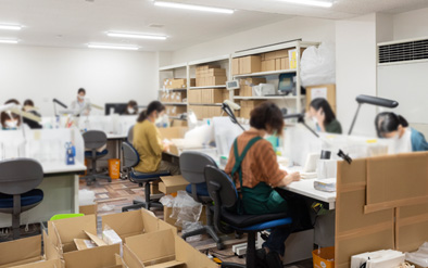 西京物流サービスでは、商品の検品やラベル貼りをはじめ、保管貨物に付加価値を高める多種多様なサービスを提供します。