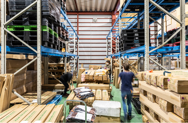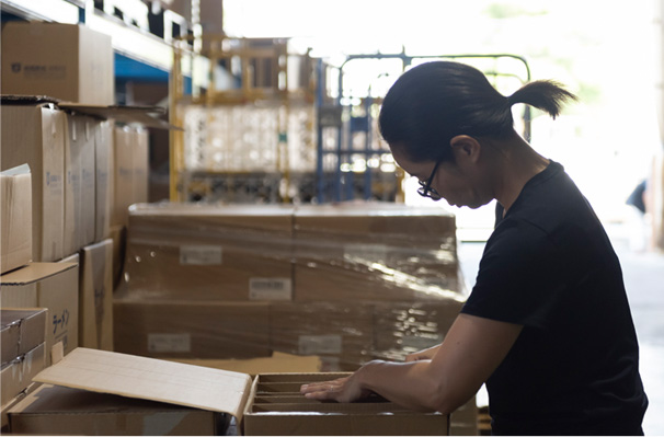 今では倉庫内、内職業務に対する窓口、及び現場管理を行なっています。入社当時は内職業務がメインでしたので、作業工程の指示を書類・加工見本等で習いました。先輩に付き、細かいところまでゆっくりと教えていただき、その経験が今のベースになっています。