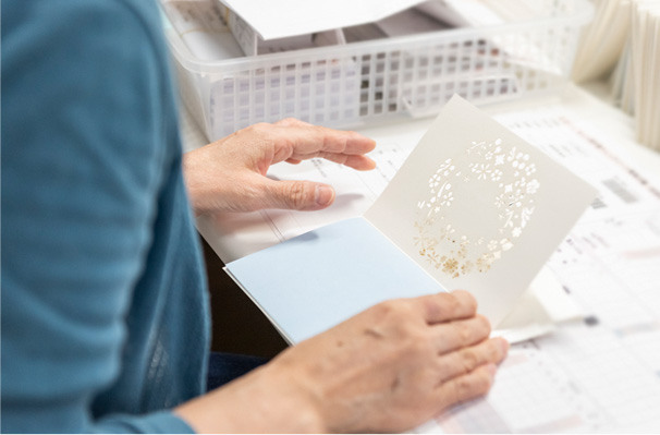 現在は入社して1年ほど経ちますが、内職作業の準備サポートや出来上がった納品物のチェックを主に行なっています。